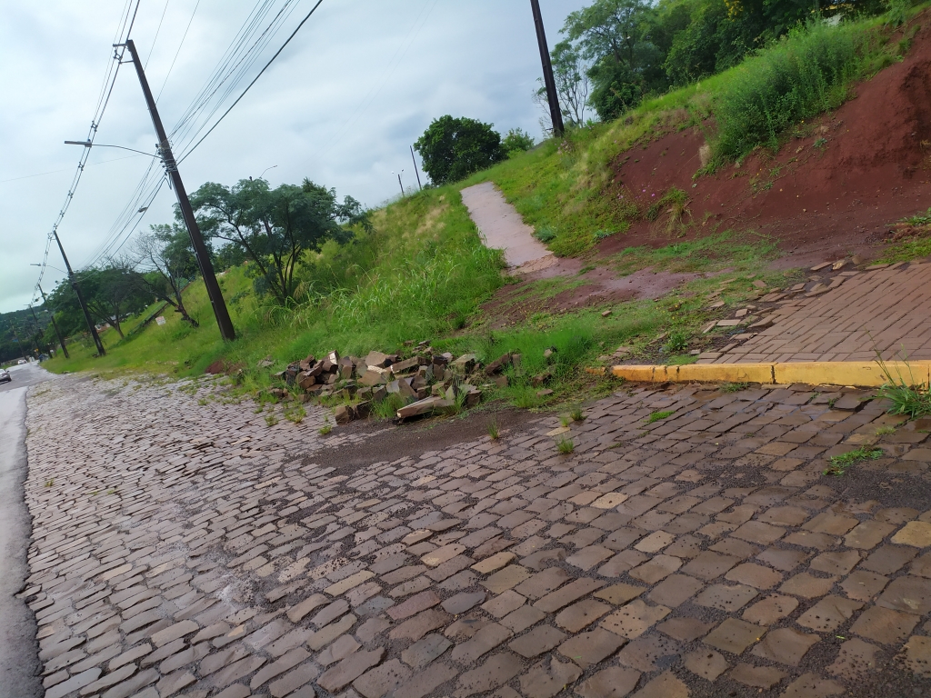Solicita com Urgência a colocação de calçada de passeio na Avenida Pátria, na extensão da Praça Levino Junges.
