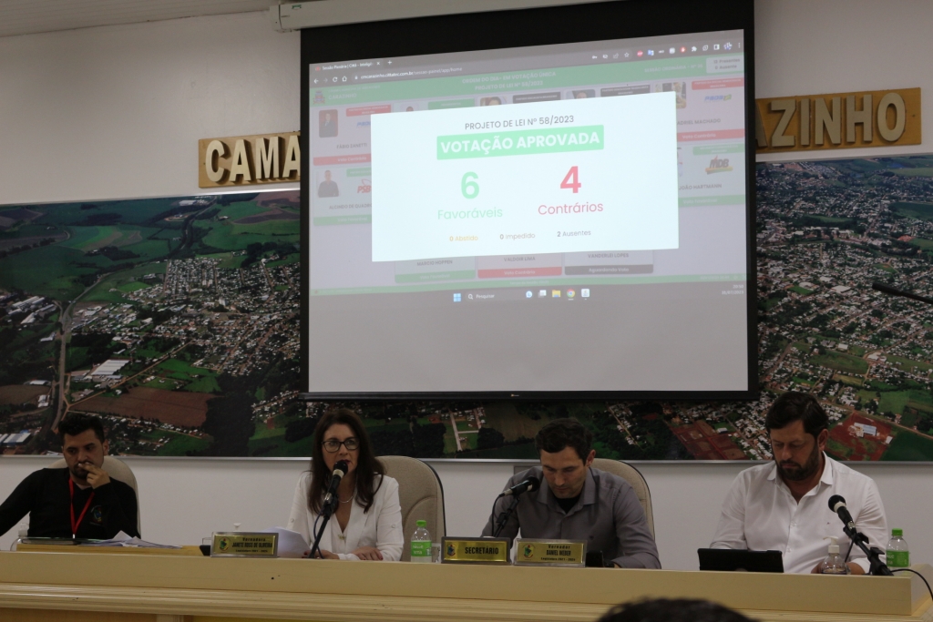 O outro foi o PL nº 58/2023,que institui a Comissão Permanente de Manutenção do eSocial, a fim de atender às normas e exigências do sistema, implantado pela Receita Federal. A comissão será responsável pela manutenção e alimentação dos dados das informações exigidas. A matéria recebeu seis votos favoráveis e quatro contrários, estes dos vereadores Adriel Machado, Bruno Berté, Fábio Zanetti e Valdoir de Lima. Os vereadores Adriano Strack e Vanderlei Lopes estavam ausentes no momento da votação.