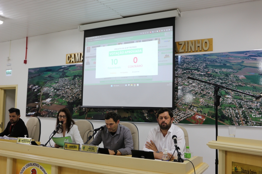O primeiro deles foi o PL nº 55/2023, que autoriza a abertura de créditos especiais e adicionais ao Orçamento de 2023 no valor de R$ 600 mil para a manutenção da iluminação pública. Este teve votação favorável de todos os vereadores.