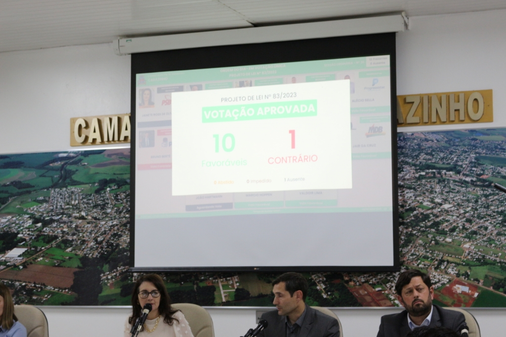 O projeto original teve 10 votos favoráveis e um contrário, do vereador Bruno Berté (PDT), e uma abstenção do vereador João Hartmann, já que o projeto envolvia parente do edil. Pelo mesmo motivo o vereador Vanderlei Lopes pediu licença ainda durante o dia e não esteve presente à sessão. Foi substituído pelo suplente do MDB, Jair da Cruz.
