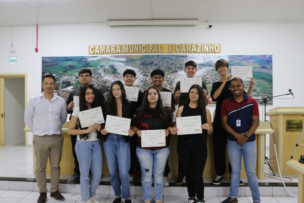O diretor de expediente da Câmara Municipal, Jair Pereira da Cruz, parabenizou a todos os estudantes, seus familiares e professores que estiveram presentes ao longo do ano. “Tivemos muitos estudantes interessados que nos procuraram pedindo ajuda para construir seus projetos e ver como eles poderiam ser viáveis para a comunidade. Nós vimos o crescimento deles aqui dentro e foi muito gratificante. Esperamos ver eles futuramente representando a comunidade carazinhense”, destacou.