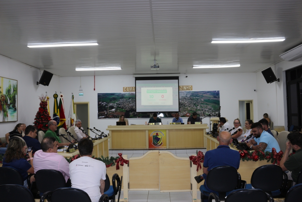 O oitavo e nono projetos aprovados tratam-se do PL nº 171/2025, que autoriza a abertura de crédito suplementar ao Orçamento de 2025 no valor de R$ 90 mil para a aquisição de horas-máquina para serviços de terraplanagem visando melhorias na pista de rodeio do Parque Vali Albrecht, e do PL nº 179/2025, que autoriza a abertura de crédito suplementar e especial no valor de R$ 2,2 milhões, oriundos do Fundo Municipal da Gestão Compartilhada da Corsan, para compras de contêineres de lixo e de um caminhão para limpeza urbana e recolhimento de resíduos sólidos no Município.