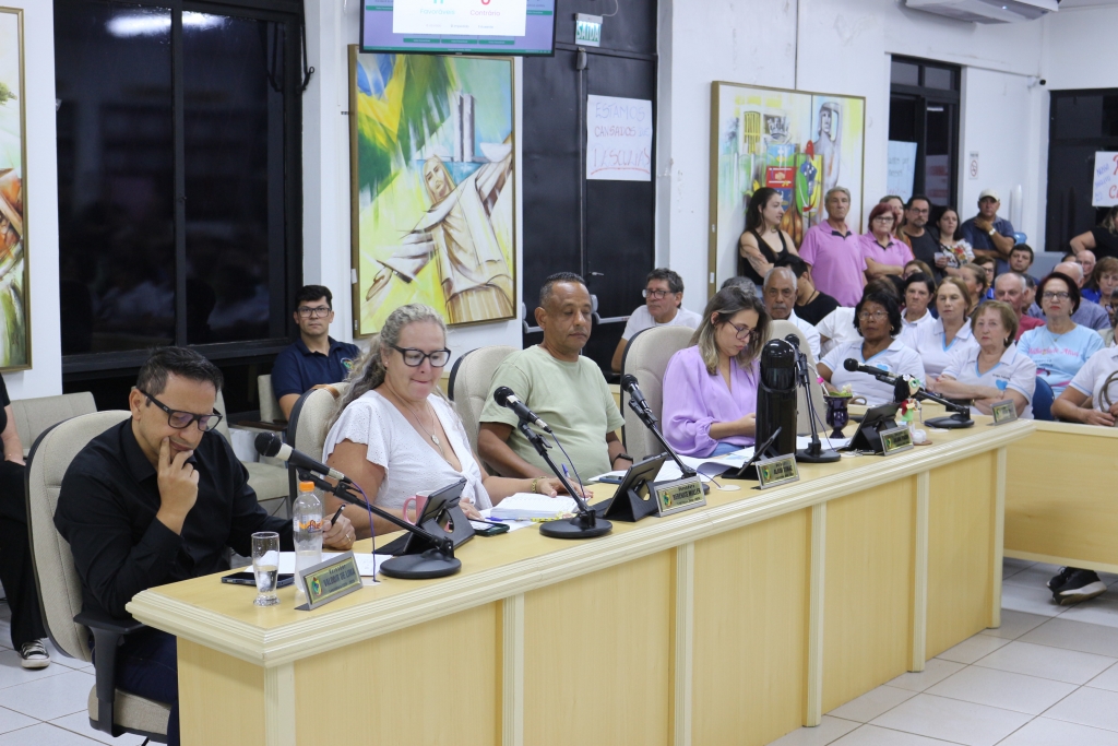 Também estava em apreciação o PL nº 07/2026, que trata da autorização de uso de equipamentos públicos esportivos municipais, em especial o Ginásio da Acapesu, para realização de eventos de natureza não esportiva, com a respectiva cobrança de preço público.
