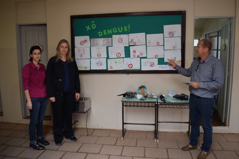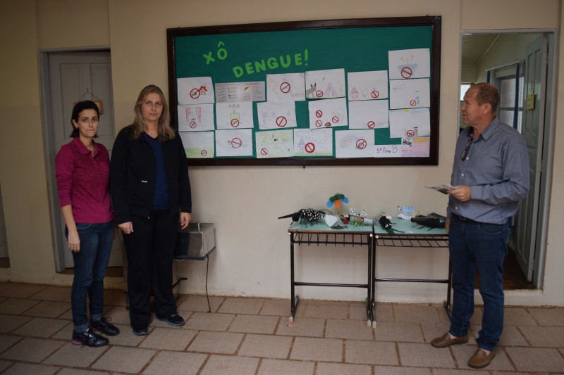 A primeira escola visita nesta quarta foi a Escola Estadual de Ensino Fundamental Rodolfo Bolzani, onde Paulino de Moura foi recebido pela diretora Katia Simone Ceze Skowronski e a orientadora Juliana Ecker Kolling. A diretora parabenizou a iniciativa dos vereadores e disse estar preocupada com a situação do município. Apresentou ao vereador os trabalhos realizados pelos alunos na semana passada, como forma de orientação as crianças. Também citou dois casos que chegaram até a escola de uma mãe que teve o caso confirmado da dengue. Isso tem feito com que se tenha um cuidado redobrado com as crianças. Disse ainda que solicitou a secretaria de saúde material informativo sobre a dengue e foi encaminhado a ela somente um cartaz para expor na escola.