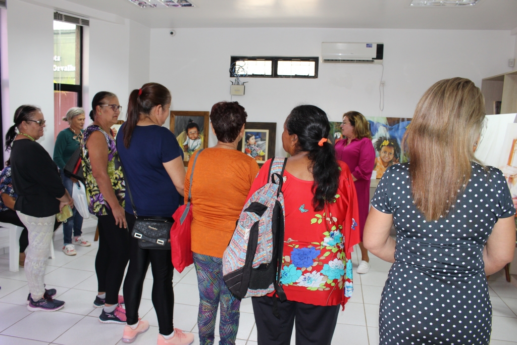 Acompanhados pela Assistente social e Coordenadora do Cras, Cecília Paz dos Santos, Psicóloga Beatriz da Silva Ambros e também a Estagiária de Serviço Social Tauane Cardoso Borin , eles visitaram a exposição “Mulheres” da artista plástica Ilse Ana Piva Paim, que está montada no Espaço de Talentos Locais.